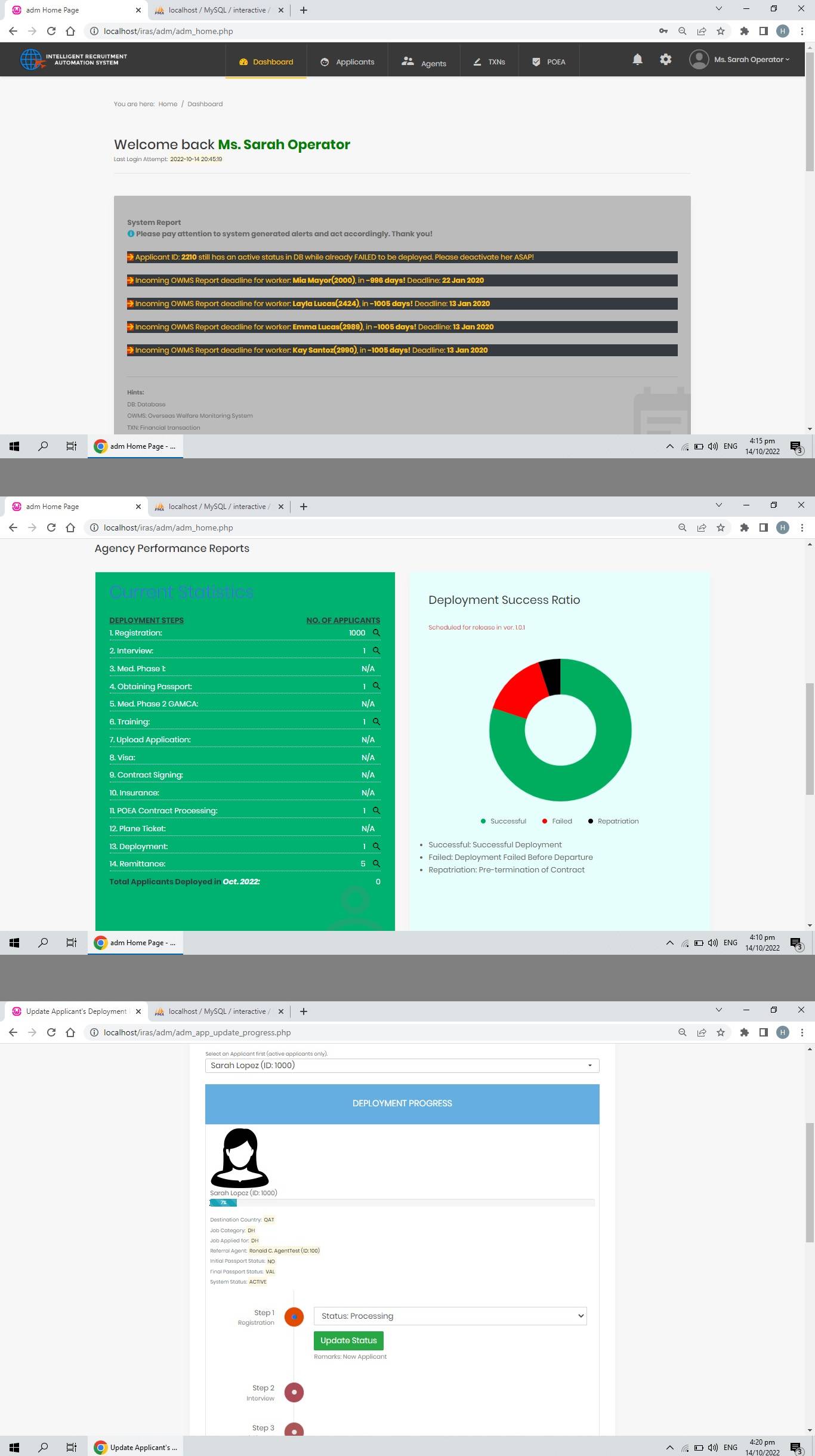 The SOP had 13 steps in total such as: Initial Job Interview, Data entry to system, Medical Tests, Orientaion, Passport & Visa issuance, etc. Tracking the status of each applicant and avoiding critical deadlines was the pain point of this company.